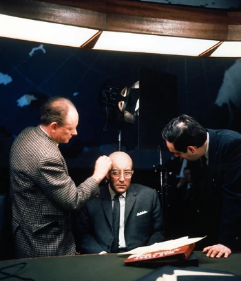 Merkin Muffley is the president of the United States in Dr. Strangelove or: How I Learned to Stop Worrying and Love the Bomb. He is concerned with making sure that the Soviet Union don't use the Doomsday Device.